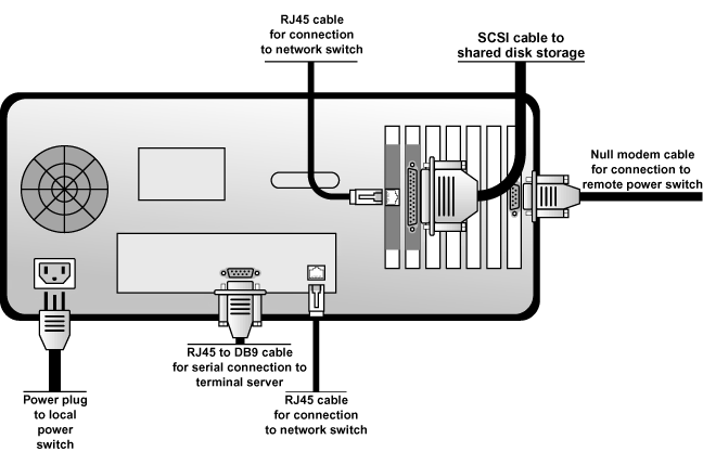 Figure 2-2 shows the bulkhead of a sample member and the external cable connections for a typical cluster configuration.