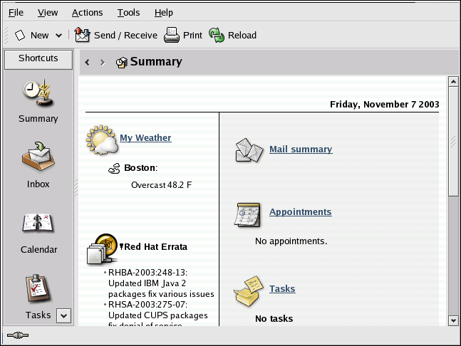 Evolution is more than just an email client. It provides all of the standard email client features, including powerful mailbox management, user-defined filters, and quick searches. It additionally features a flexible calendar/scheduler which allows users to create and confirm group meetings and special events online. Evolution is a full-featured personal and workgroup information management tool for Linux and UNIX-based systems, and is the default email client for Red Hat Enterprise Linux.