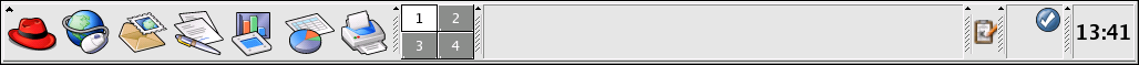 The panel stretches across the bottom of the desktop. By default, it contains the main menu icon and quick-launch icons for starting a Web browser, email client, word processor, and other commonly used applications.